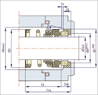 單端面/非平衡型/任意旋向/橡膠波紋管 108系列采用橡膠波紋管做次級密封,并兼傳遞扭矩力,通過雙補償環背靠組對,可成為HQ208密封,常用于潛水泵。 運行參數 規格:10~55mm 壓力:≤0.8Mpa 溫度:-20℃~120℃ 線速度:≤10m/s 軸向竄動量:±1.0mm 材料組合 密封端面:石墨、碳化硅、碳化鎢、氧化鋁 輔助密封:丁腈膠、氟橡膠、乙丙膠 金屬構件:不銹鋼