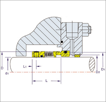 簡介 單端面密封、平衡型/任意旋向/金屬波紋管/符合DIN24960標 準 該系列應用廣泛,適用于高溫、高年度介質。動環“O”形圈不 起補償作用,因此波紋管移動沒有阻尼。 運行參數 d1=16…100mm 0.64”…4” P1=當波紋管受外壓時25bar 360PSI 當波紋管受內壓時<120℃10 bar 145 PSI <220℃10 bar 72 PSI t=-20℃~220℃ v=15m/s